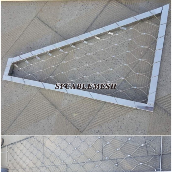 Red de cable de acero inoxidable con marco utilizado generalmente como barandilla y malla de relleno de barandilla, malla de protección de escalera, malla de protección de balcón, también utilizada para malla de seguridad de puentes, malla de protección contra caídas, etc.