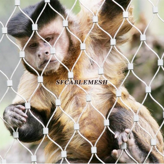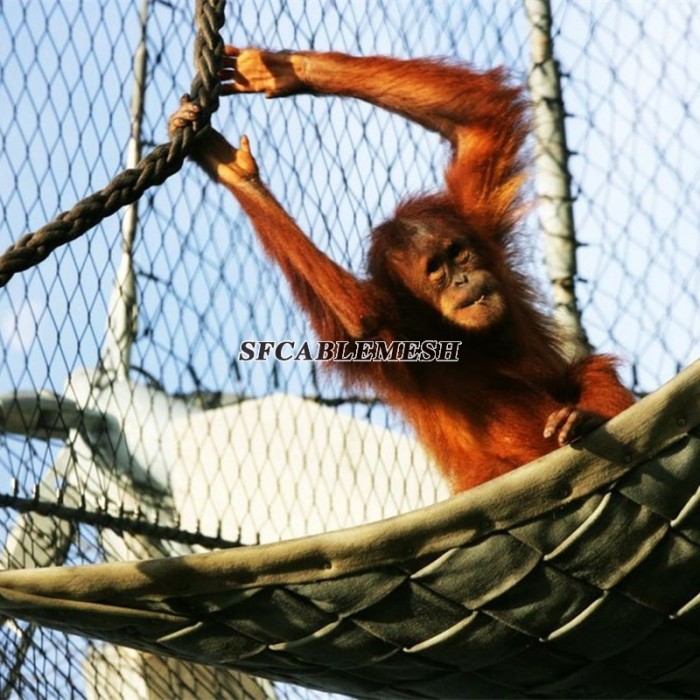 Stainless steel zoo enclosure mesh has been used mainly for monkey enclosures and aviaries, as the size and resilience of the mesh structure can be adjusted to suit any specific requirements simply by choosing wire ropes of the appropriate diameter, so, it is also suitable for other animals, it allows constructions of practically any shape and size.