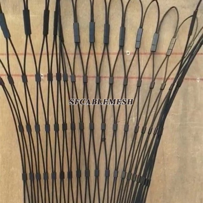 The black stainless steel wire rope mesh has a unique aesthetic, most popular used in zoo enclosure netting, aviary mesh, green plant climbing nets, indoor and outdoor decoration etc, especially suitable for areas with strong sunlight.